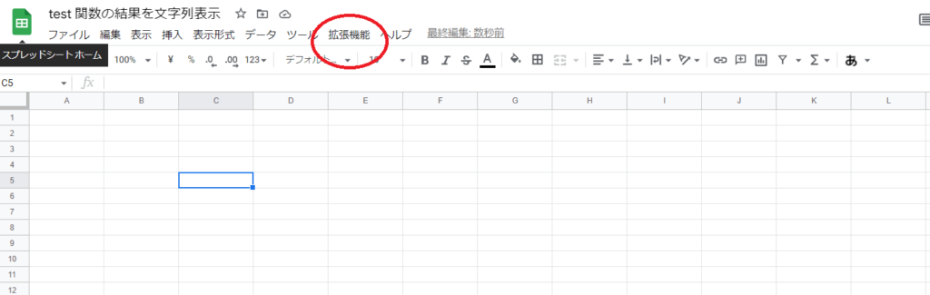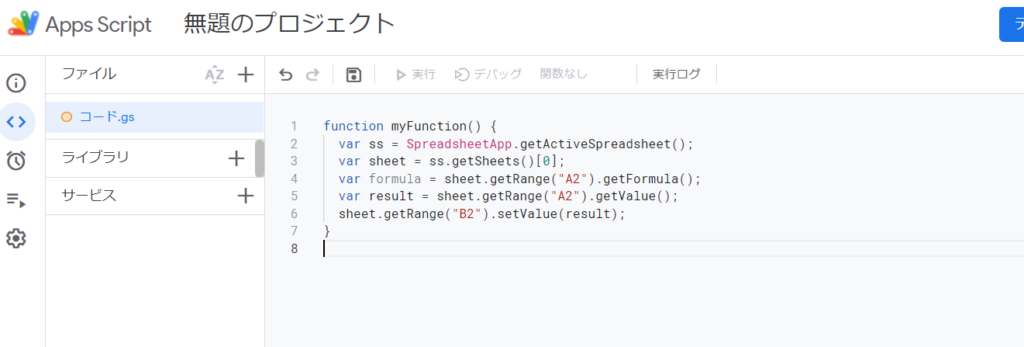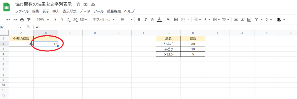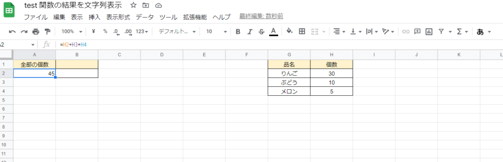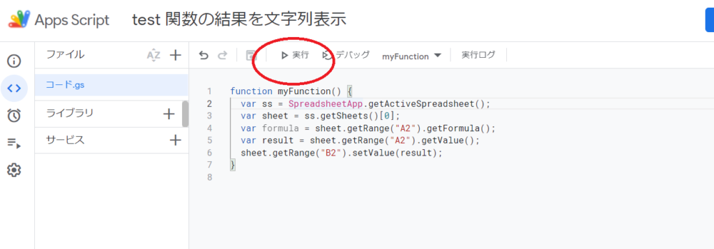 このスクリプトを実行すると、A2に入力された関数の結果が B2に文字列として自動的に表示されます。