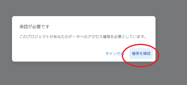 承認が必要です。と表示されますので権限を確認をクリックしてください。