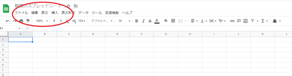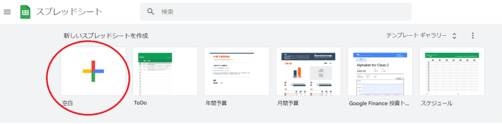 新しいスプレッドシートを作成の空白を選択しましょう。